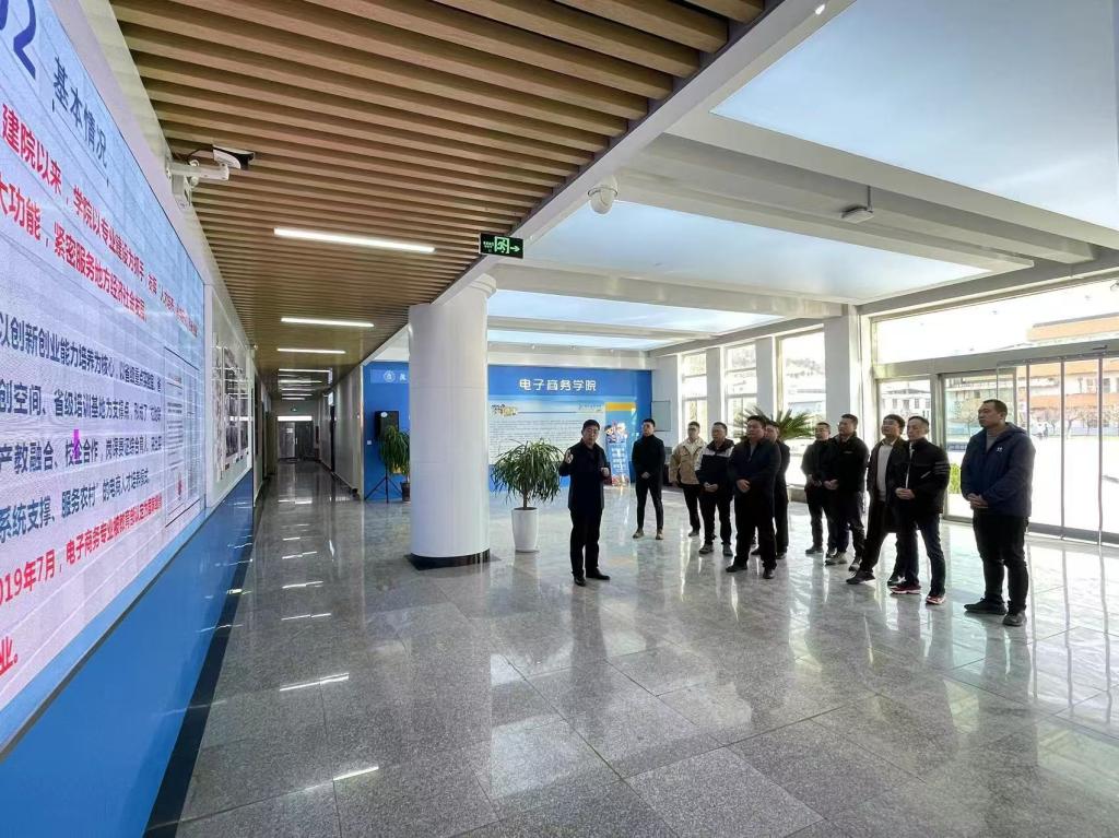 在考察过程中,公司党总支书记何炜对考察团的到来表示热烈欢迎,并详细介绍了公司的发展历程、办学特色以及近年来在政校企合作方面所取得的显著成就。特别是针对“陇南电商”的发展模式和成功经验,何书记进行了深入浅出的讲解,使考察团成员对“陇南电商”有了更加全面和深入的了解。